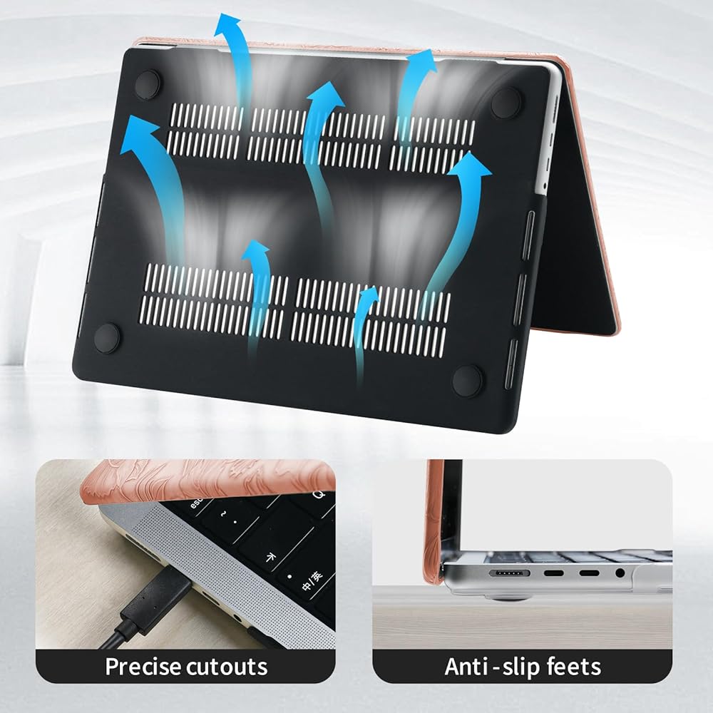 PREMIUM MATERIAL: Embossed Floral Mac Book Pro 16 Case is made from premium, scratch resistance pu leather and impact resistance pc material, the surface is covered with embossed leaves and floral, forming a protective layer similar to "ultra-thin armor", it can effectively protect your device from fingerprints, scratches, shocks, dents and other damages. Coming with silicone keyboard cover to prevent keyboard from food crumbs, liquid spills and key wear