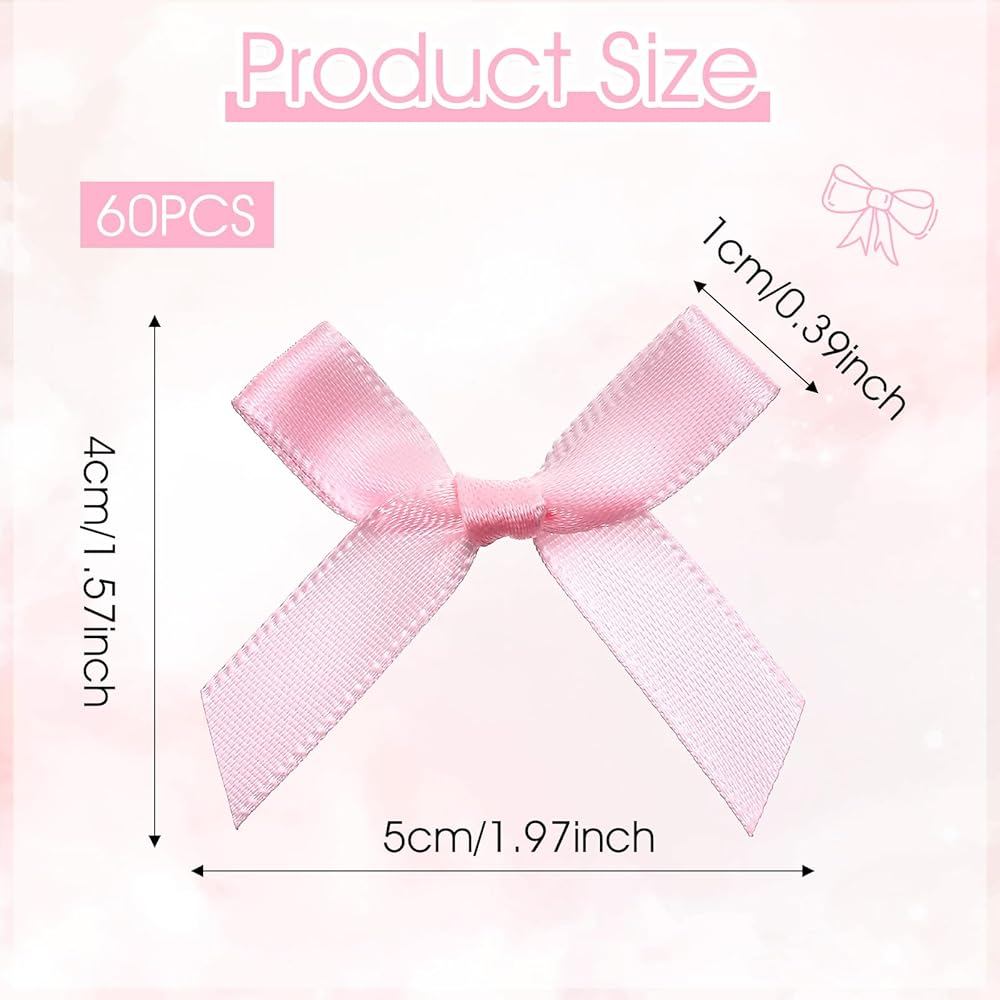 60pcs Pink Mini Bows, Cute Mini Pink Bows, DIY Satin Ribbon Small Pink Bows, for Birthday, Crafts, Gift Wrapping, Christmas, Wedding Party Cake and Candle Decorations (1.97X1.57In)