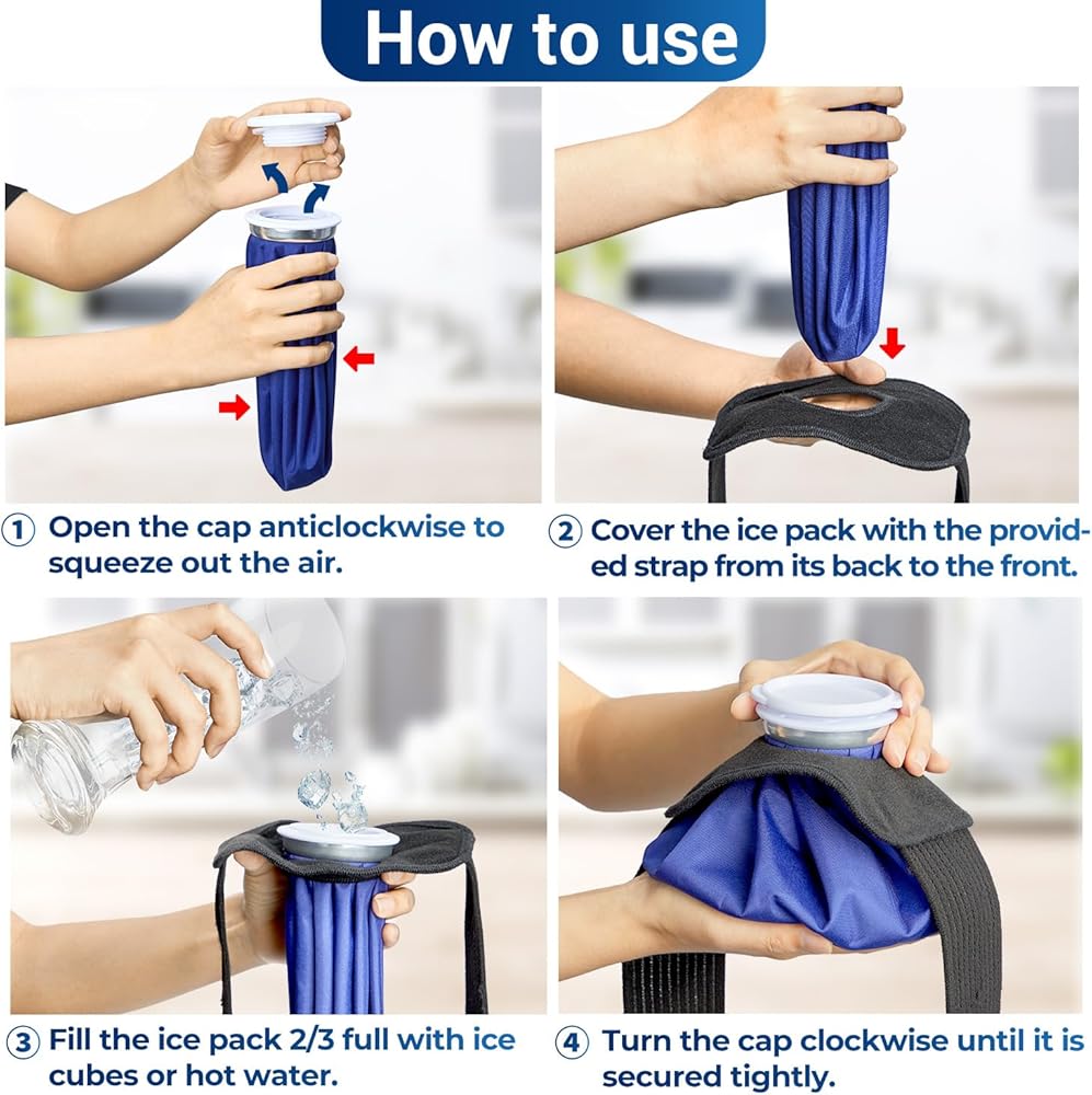 MULTIPLE THERAPIES: For cold therapy, simply fill the ice bag 2/3 full with ice cubes to eliminate headaches, bruises, migraines etc. For hot therapy, add hot water (not boiling, Notice: The temperature for hot water therapy is 50-60℃/122℉-140℉.) to promote blood circulation and soothe away aches alike.