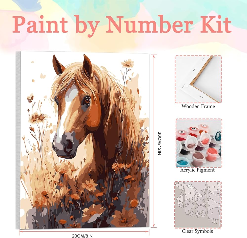 Auremi Horses Paint by Numbers Kits for Adults Beginners,Easy Animal Paint by Numbers on Canvas Framed DIY Painting by Numbers for Gift Home Wall Decor 8x12 Inch