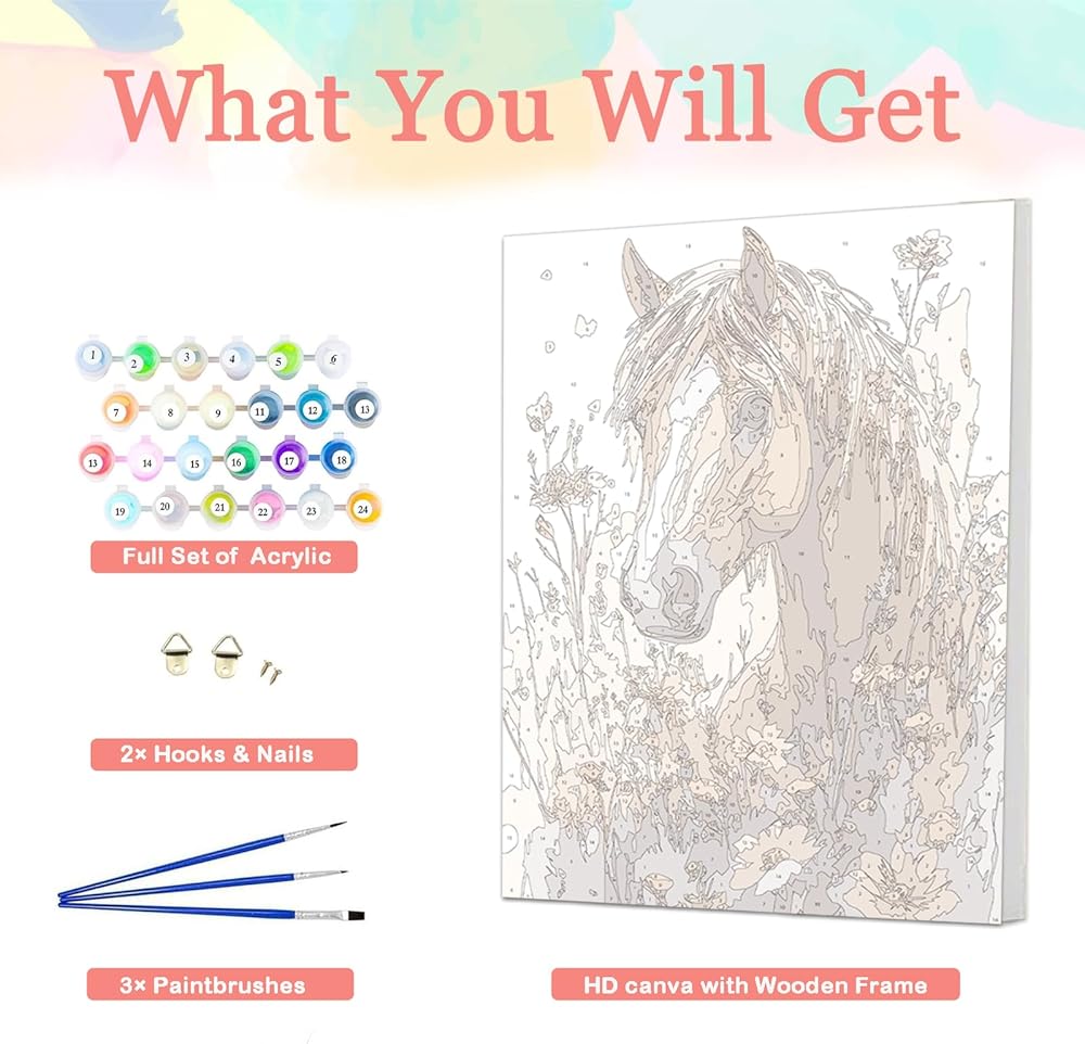 Premium Paint by Number Kit with Wooden Frame:This paint by number kit includes a sturdy wooden frame, allowing you to display your finished artwork effortlessly. No extra framing is needed—just paint, frame, and hang!