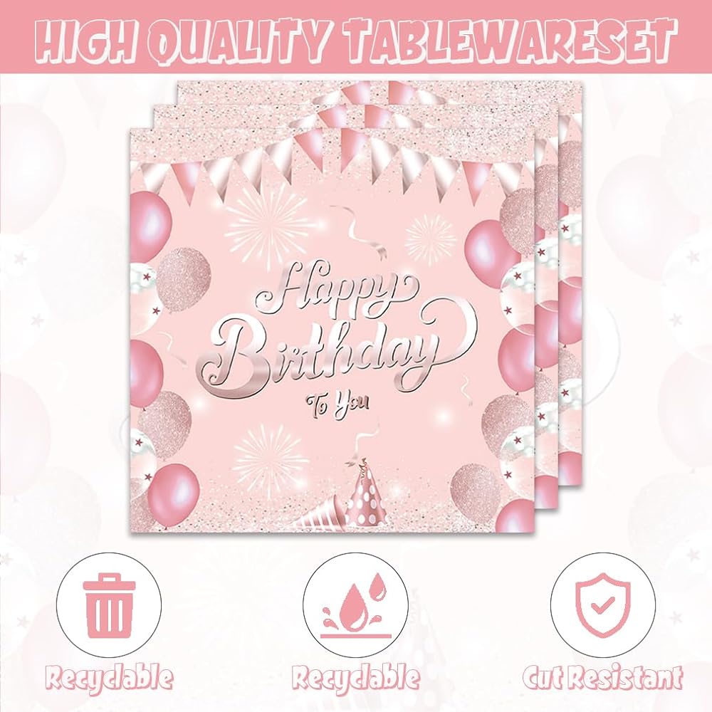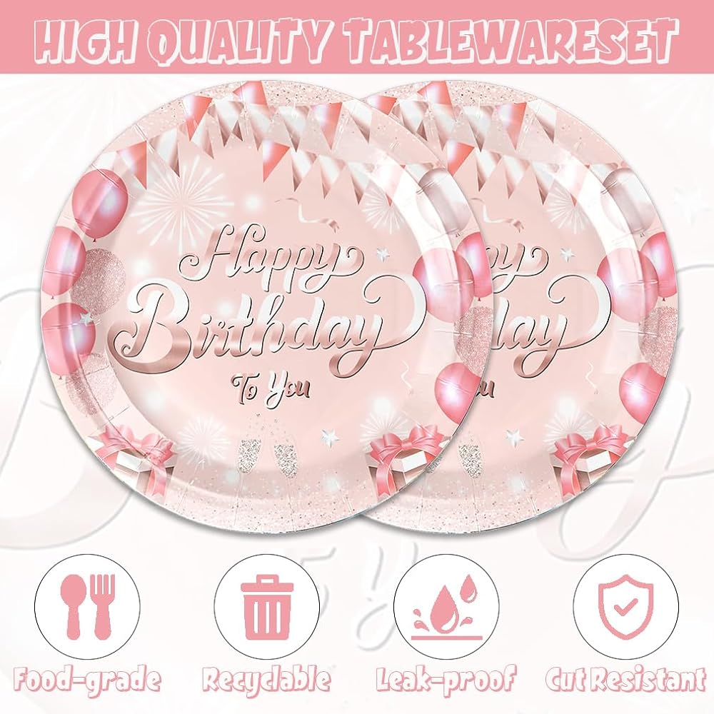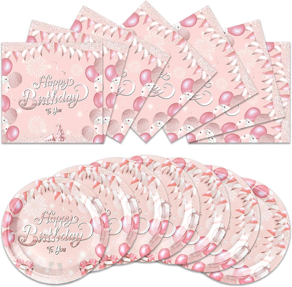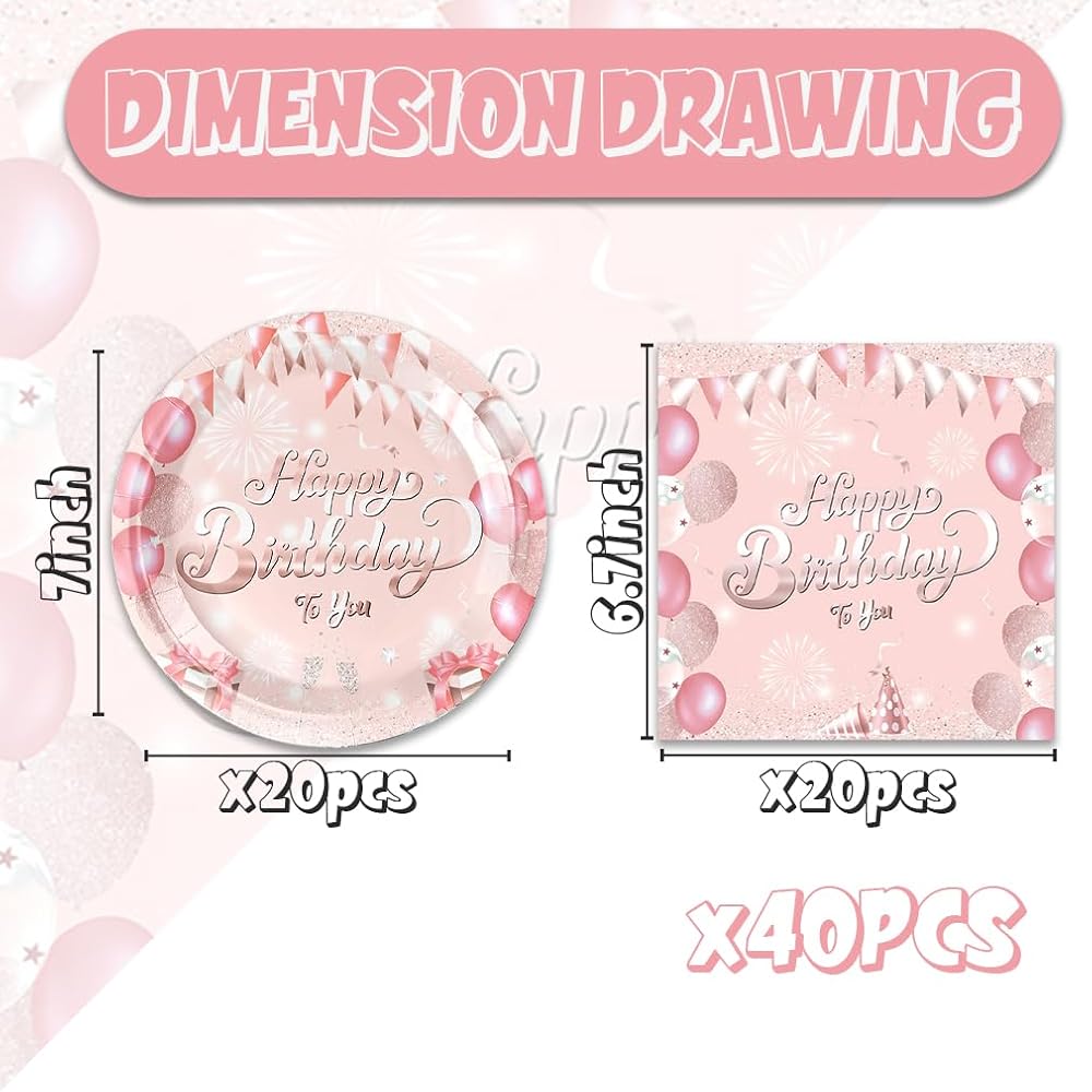 40pcs Pink Rose Gold Party Tableware set,Pink Happy Birthday Plates and Napkins Halloween Birthday Party Decorations Paper Tableware Disposable Themed Party Decor Favors for Kids