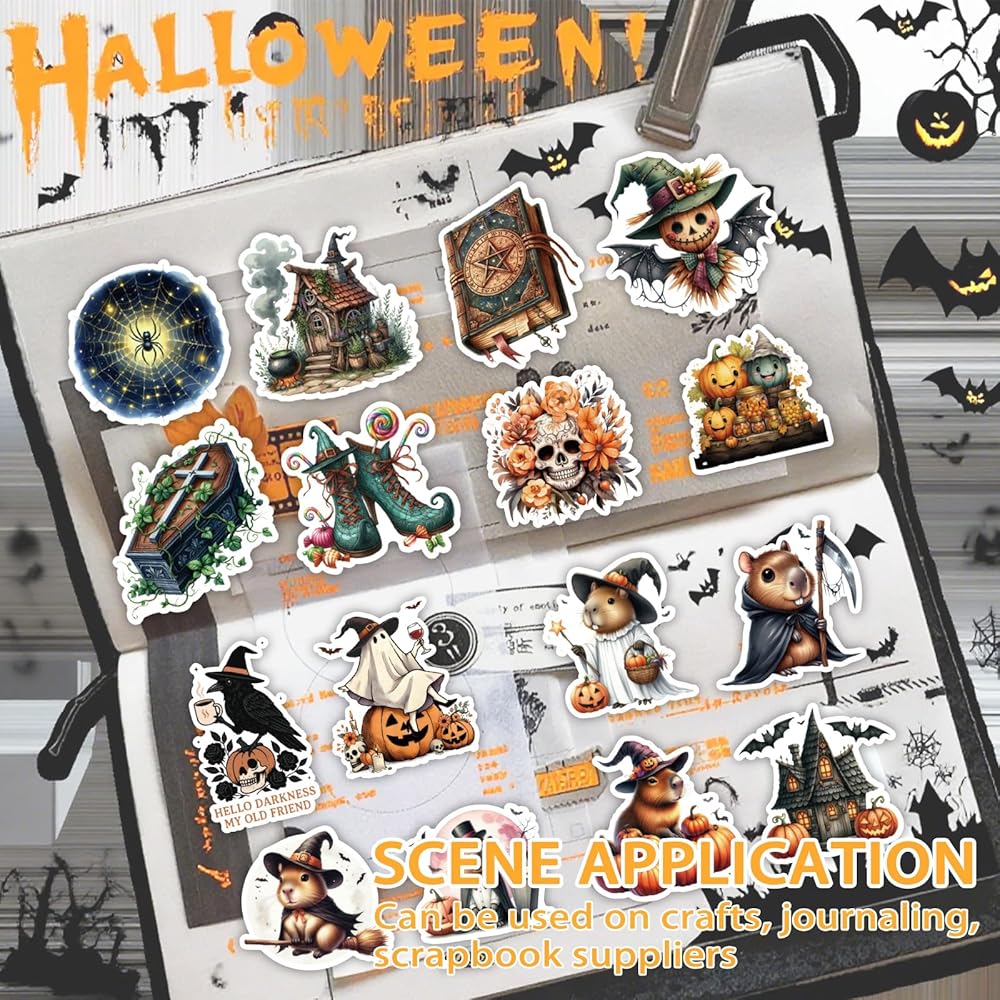Bomichi Halloween Sticker Book, 54 Sheets 366 Pcs Journaling Scrapbooking Stickers for Journaling Scrapbooking Bullet Journals Planners Letter Card Making Collage Art Crafts Water Bottle