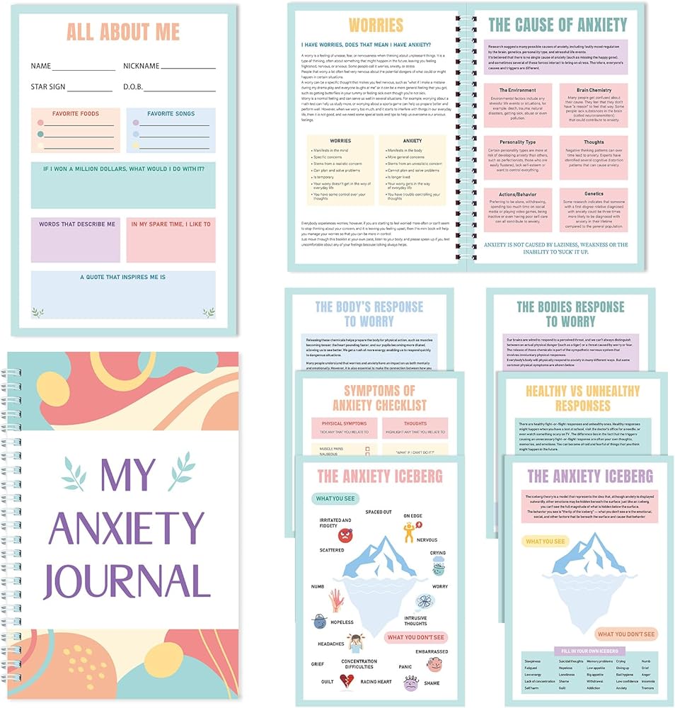 • Comprehensive Anxiety Management Workbook: This anxiety journal is designed to guide you through understanding and managing your anxiety. Packed with trackers, worksheets, and informative pages, it helps you evaluate your current situation and implement effective strategies, making it an essential tool for your mental health journey