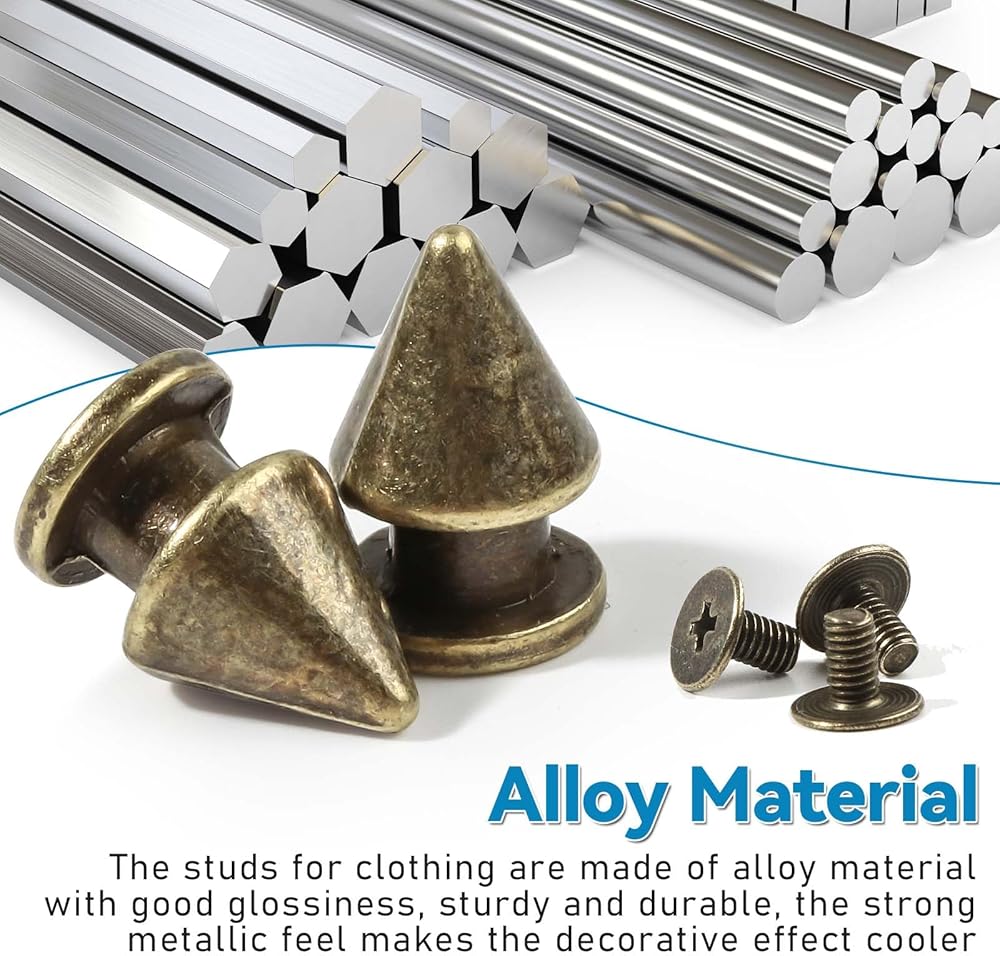 Upgrade your style with these sleek and durable clothing spikes and studs, crafted from high-quality alloy for a cool metallic finish. Designed to last, they feature a smooth, glossy surface that resists rust and maintains their shine over time. Installation is quick and easy—simply use the included hole puncher and screwdriver to attach them to chokers, jackets, jeans, bags, and more. Versatile and reusable, these clothing spikes let you customize your favorite items for a bold, personalized look. Perfect for adding an edgy touch to any outfit or DIY project!