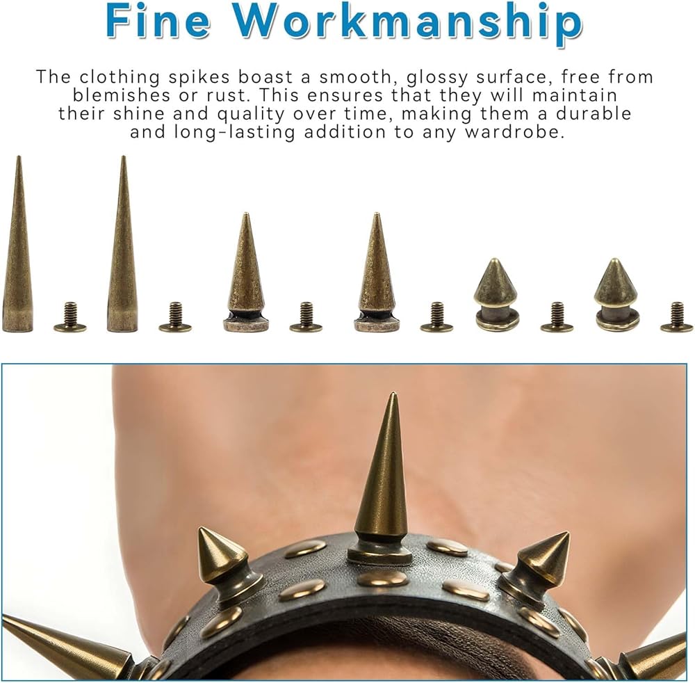 Wide Application:Spike studs for crafts can be used on a wide range items, including leather jackets, denim jeans, bags, and more. Whether you want to add some attitude to your favorite jacket or create a custom look for a special occasion, these spikes offer endless possibilities for expression and creativity.