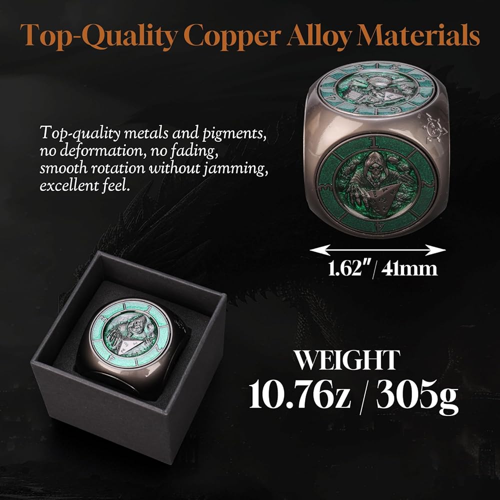 【High-Quality Copper-Zinc Alloy Material and Top-Notch Technology】— The fidget dice are made from high-density copper and zinc alloy, combined with precision electroplating technology and exclusive colored pigments to create a variety of vibrant colors. The built-in rotation system has undergone over a thousand tests, ensuring durability. The perfect design and feel make these dice a collectible-grade item.