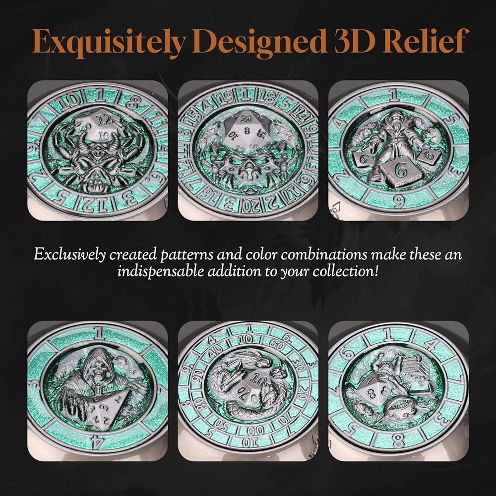 【Exquisite 3D Metal Relief and Eye-Catching Paint Colors】— The dice feature meticulously carved patterns on each of its six sides, with vivid and lifelike details. It is not just a dice but a piece of art worth collecting forever. Featuring elements such as Cthulhu, dragons, wizards, skeletons, and goblins, it enhances the D&D gaming experience and campaign immersion.