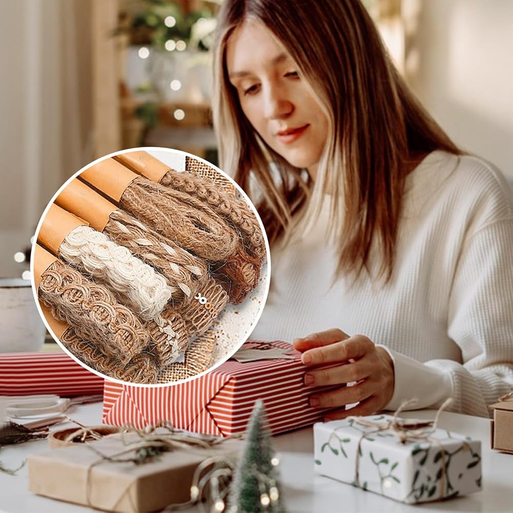 [Sustainable Aesthetic Value]:Natural jute base paired with vintage-inspired lace patterns creates timeless eco-chic appeal. Reusable across seasons: from holiday party decorations to permanent rustic home displays.