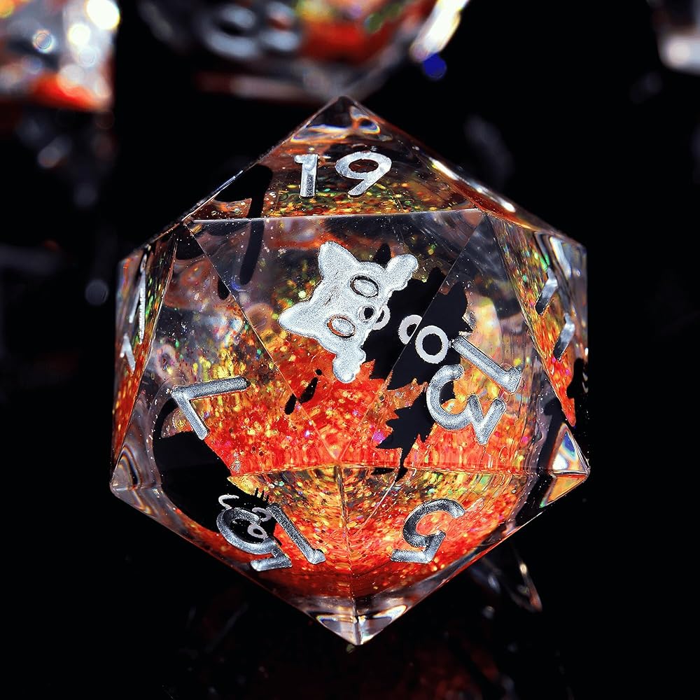 Single 20 Sided dice, Liquid Core d20-22mm, Cat DND Dice Set for Dungeons and Dragons, Role-Playing Games - Unique Design with Cute Black Cat (Cathead-Orange)