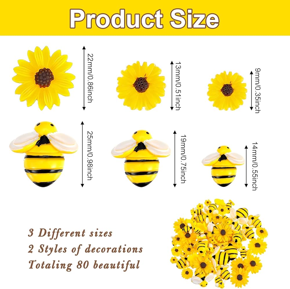 TIESOME 80 Pieces Tiny Resin Bees Daisy Flowers, 3 Sizes Resin Bees Daisy Decor Flatback Daisy Flowers Bumble Bees Embellishment for DIY Craft Scrapbooking Phone Case Wreath