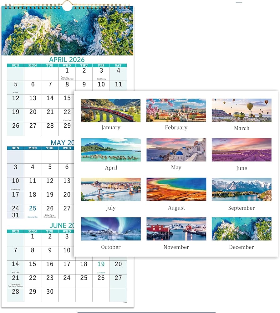 Scenic Imagery – This 2026 wall calendar features 12 months of stunning landscape photography to brighten any room. Each month displays vibrant full-color images that provide daily inspiration throughout the year.
