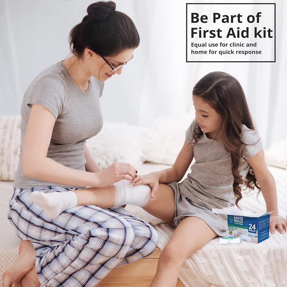 Gauze Rolls Individually Wrapped Pack of 72, 4 Inches x 4.1 Yards, Premium Quality Conforming Bandages with Bonus Medical Tape