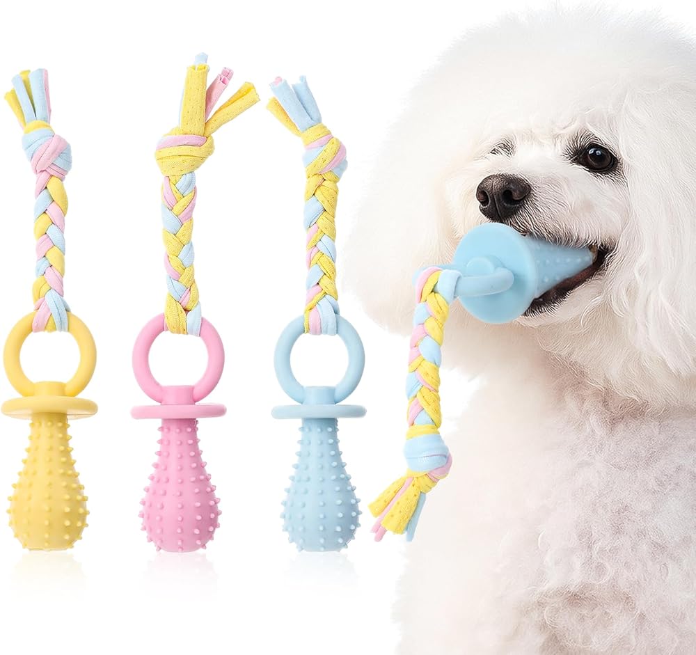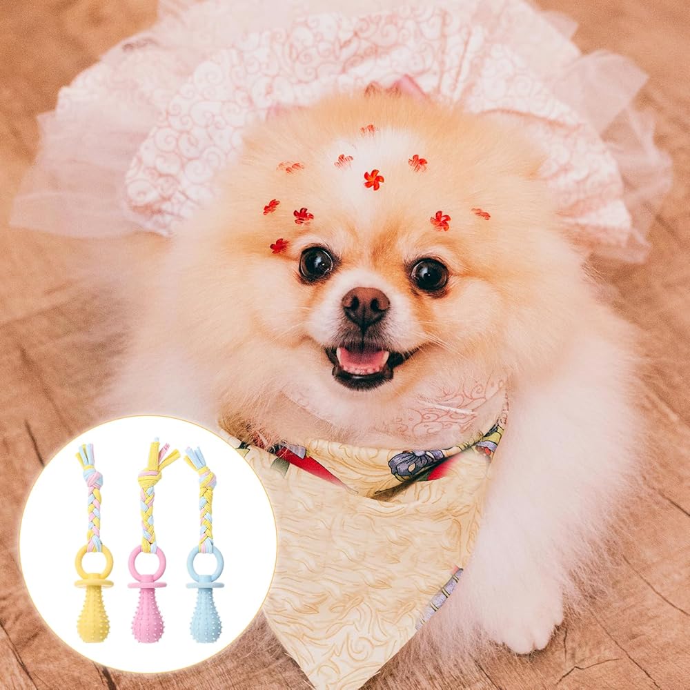 3Pcs Pet Molar Clean Teeth Rubber Toy, Dog Pacifier With Rope, Dog Chew Toys for Aggressive Chewers, Rubber Puppy Pacifier Chewing Playing Training Toys for Small Dogs & Adult Cat, 3 Cute Colors