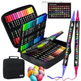 Unique Dual Tip Design: Each acrylic paint marker has a 1mm tip and a 0.5-5mm brush tip. The fine tip is suitable for outlining, detailing, and fine line work, while the brush tip allows for coloring larger areas coloring and shading. From delicate line work to bold sweeps, meet the different needs of professionals and amateurs.All colored markers are coded on the pen cap so you can quickly find the color.