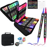 All-in-One Portable Art Kit: Own and take it when traveling! These art markers are well packed in a sturdy and durable zipper case for better storage and organizationin, color selection. Include 1 x Portable Case, 60 markers, 10 x blank greeting cards (4 white+3 black+3 Kraft), 6 x replaceable Nibs, and a handy color testing chart to plan your designs.
