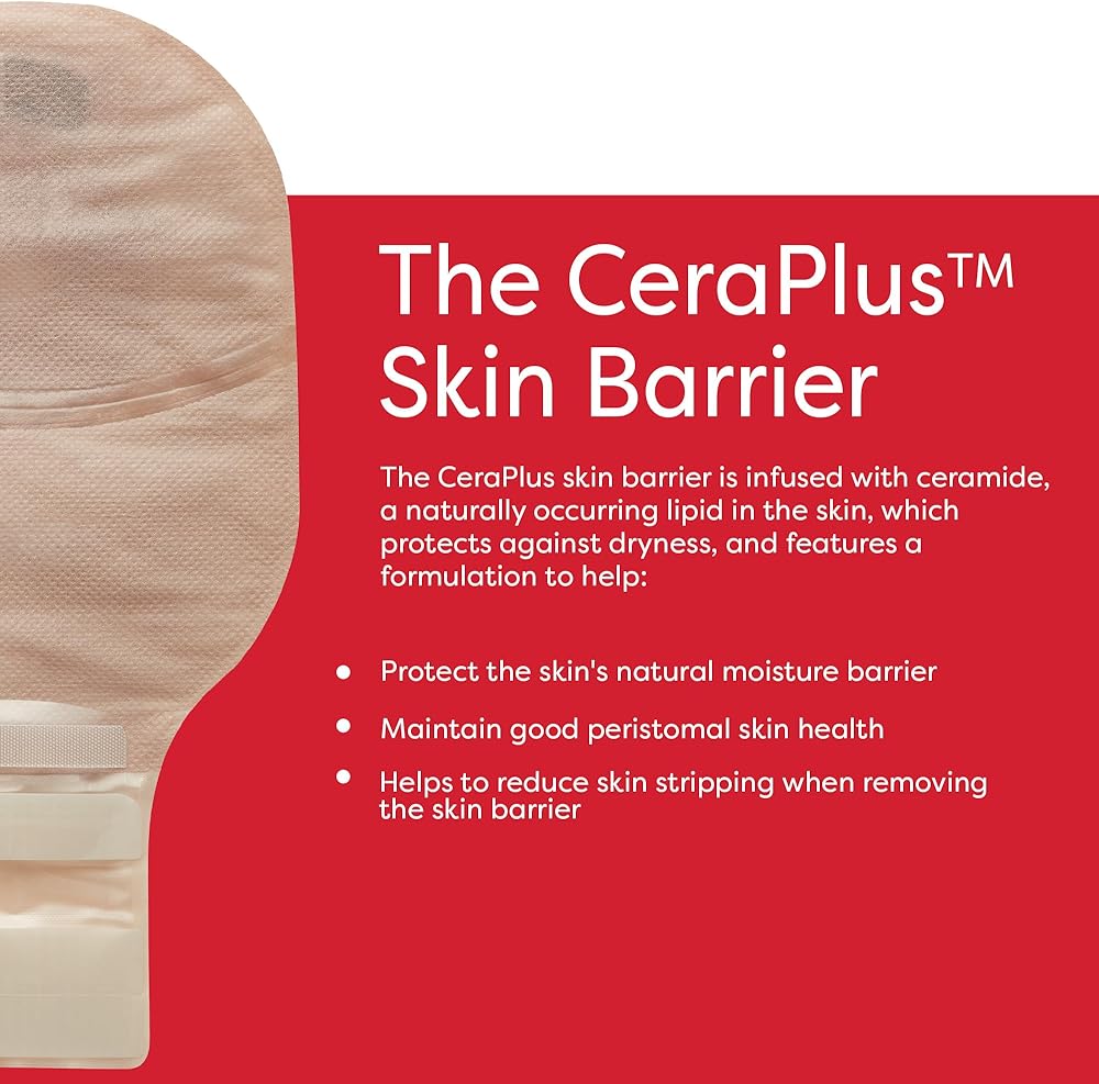 A one-piece, drainable pouching system featuring the CeraPlus skin barrier with Remois technology that is infused with ceramide