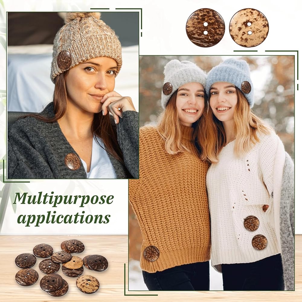 Authentic Natural Material: Crafted from genuine coconut shell. These large brown buttons boast smooth surfaces with organic patterns-eco-friendly statement pieces for sustainable fashion and craft creations