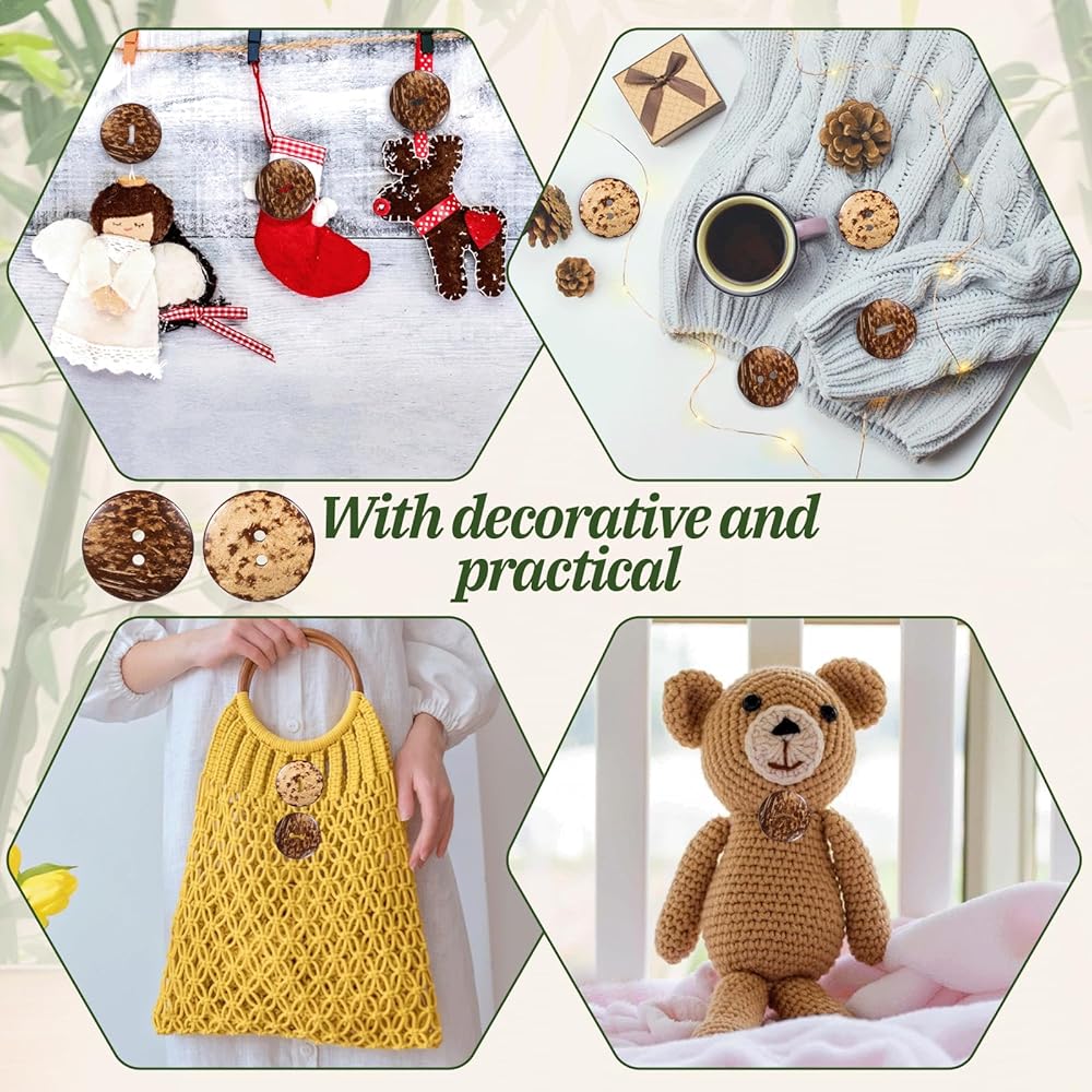 Beginner-Friendly Design: User-friendly large buttons for all skill levels. Smooth-edge coconut shell buttons securely attach via sewing or adhesive. Inspire creativity across ages-perfect school projects & DIY fashion
