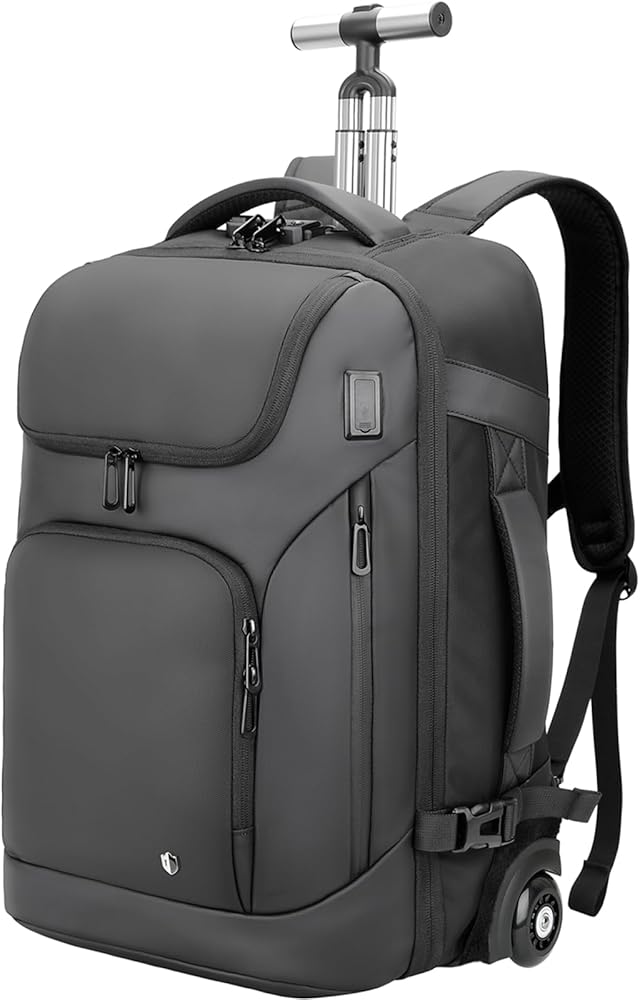 【MULTIPLE POCKETS & DUAL ANTI-THEFT】SWICKY RICOOI carry on backpack with wheels has 8 pockets, including 2 front pockets, 1 large main compartment, 1 padded laptop compartment,1 Dry-Wet separation pocket,1 Anti-skimming Pocket,1 Water Resistant side pocket and 1 anti-theft pocket.lt features a TSA-approved lock, High quality YKK zipper, and USB-C Ports, making it ideal as a laptop backpack, business carry-on backpack, tablets, books and other essentials(Fits 17.3-inch laptop).