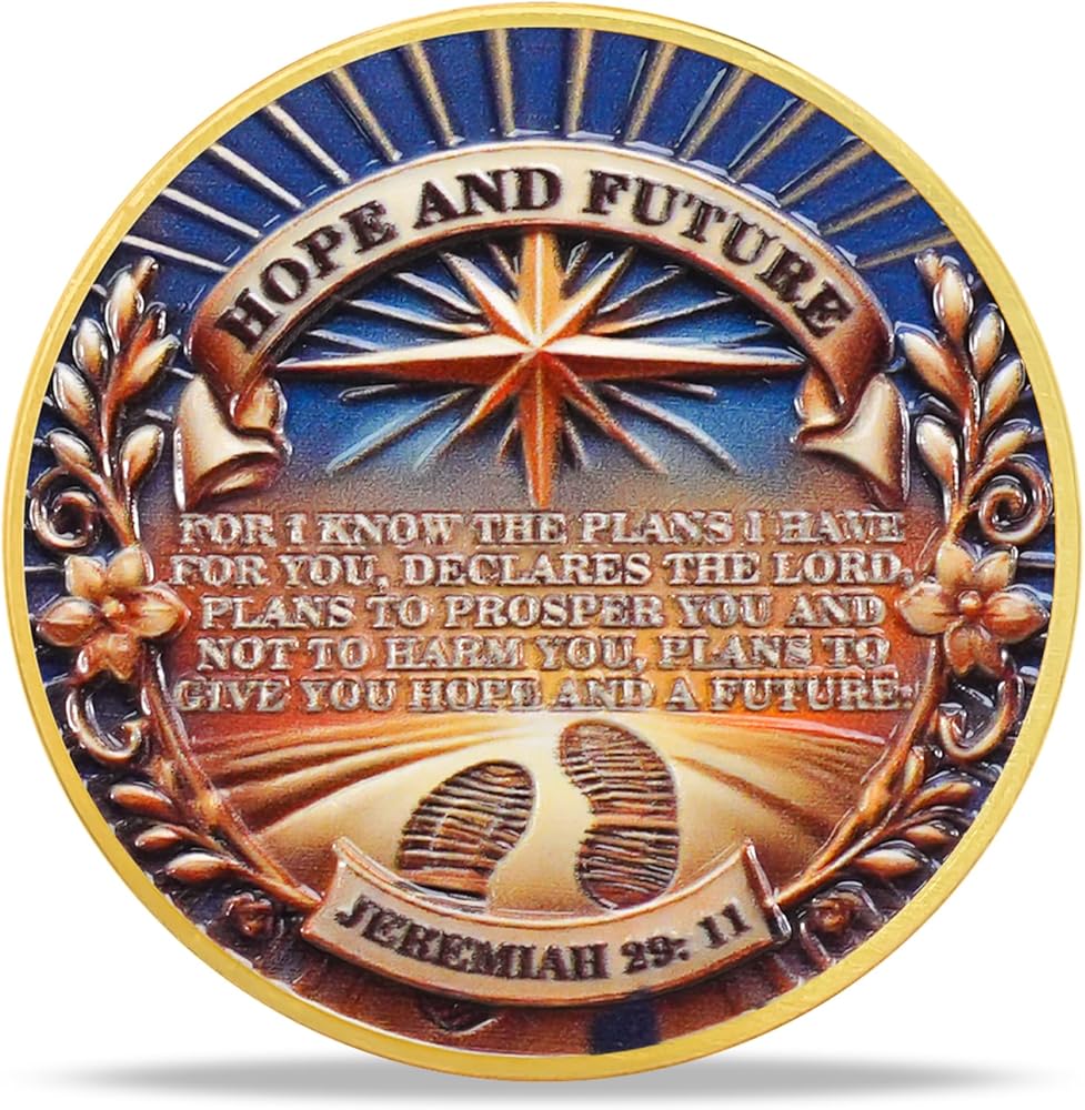 Hope & Future Christian Challenge Coin Inspring Jeremiah 29:11 Verse Token Spiritual Awakening Divine Guidance Christian Gift for Men Women Religious Keepsake