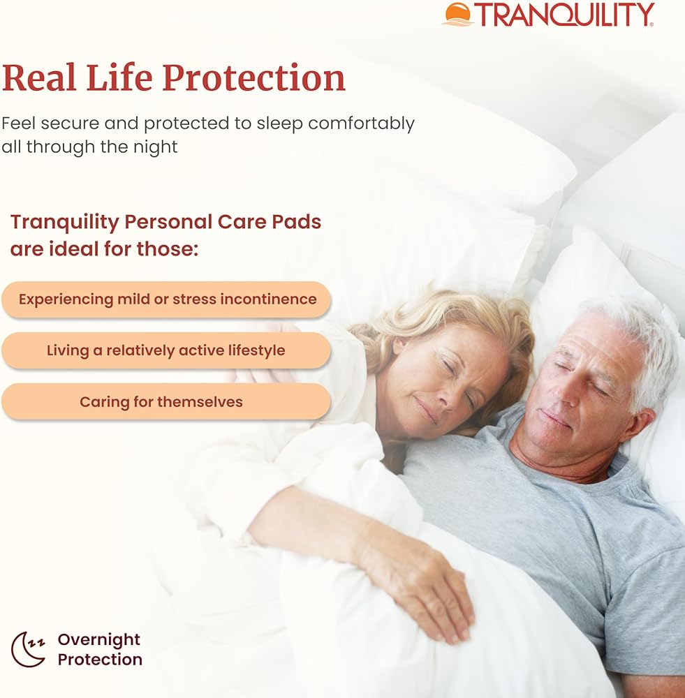 Tranquility Incontinence Personal Care Pads, Overnight Protection, Promote Dryness and Protect Against Leakage, Soft Lining & Adhesive Strip for Secure Fit in Underwear, 12.5oz Capacity, 96ct Case