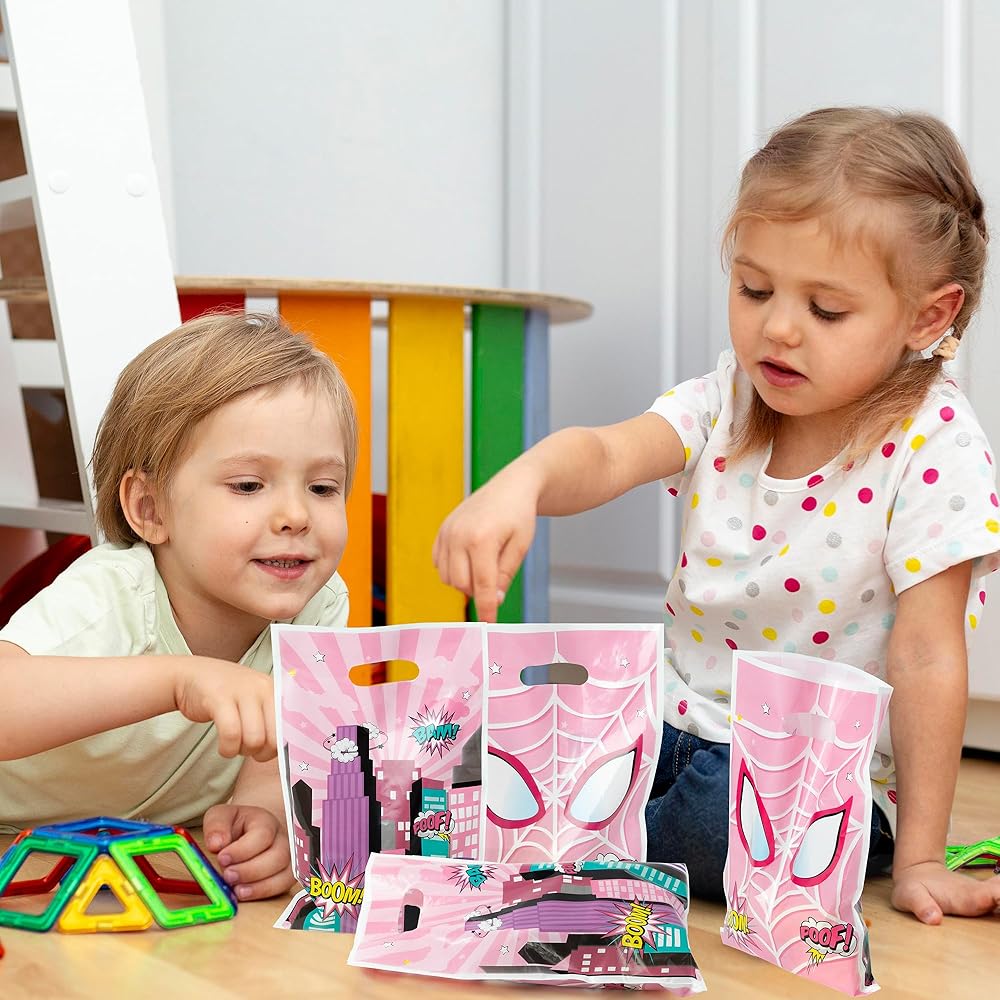 MATERIAL: These party favor bags are made of plastic material to ensure that they can hold a variety of party treats and gifts and will not tear or wear out easily