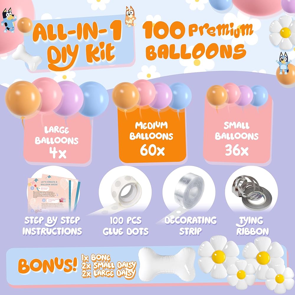 ALL-IN-1 Blue Balloon Arch Kit with BONUS Bone & Daisy Balloons for Birthday Decoration Girl - Pastel Balloons Garland for Blue Party Decorations & Party Supplies - Puppy Party Decorations