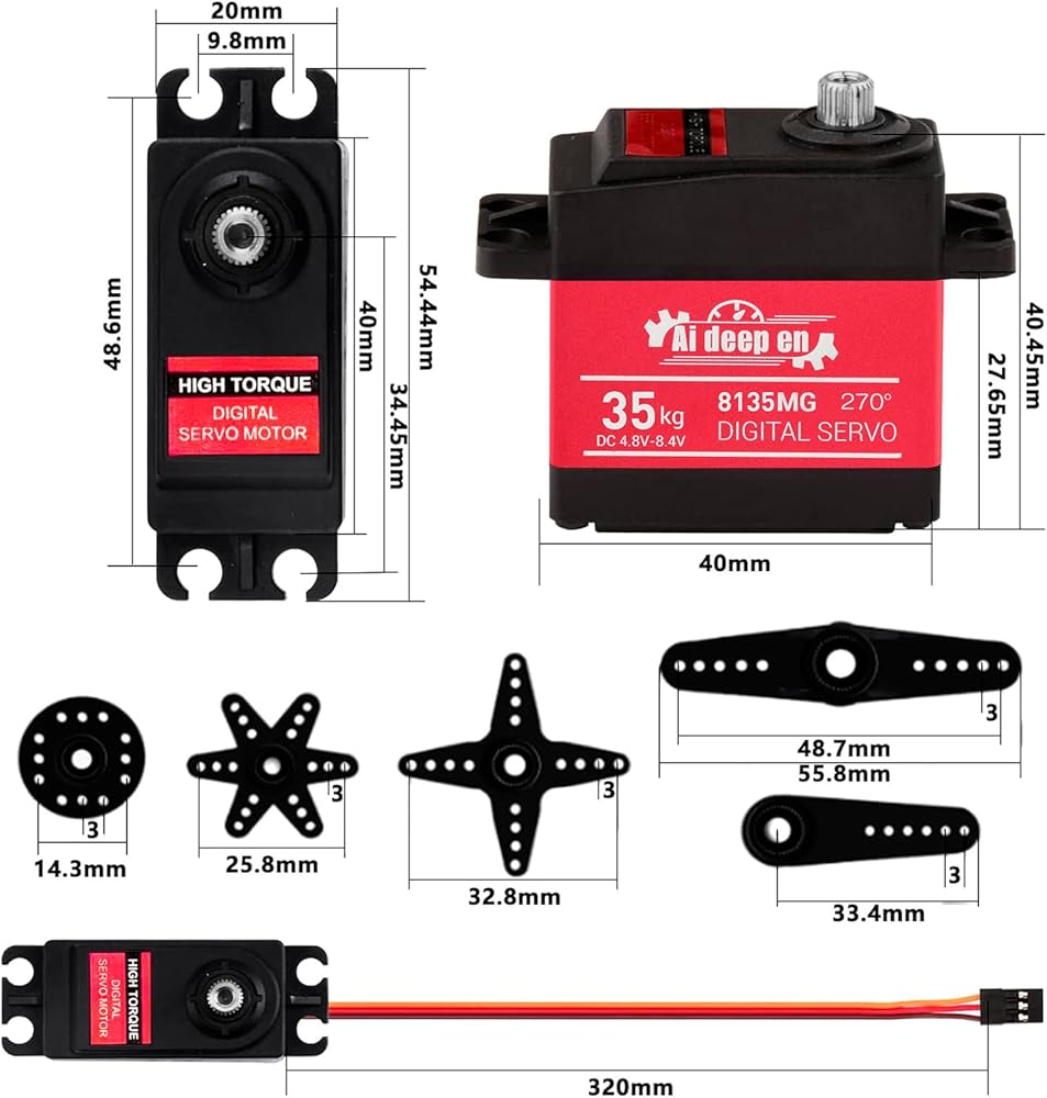 【High Rotation】Adjustable angle from 0 to 270 degrees, with 32CM soft silicone wire,excellent linearity, precise control. (PWM 500-2500μs).