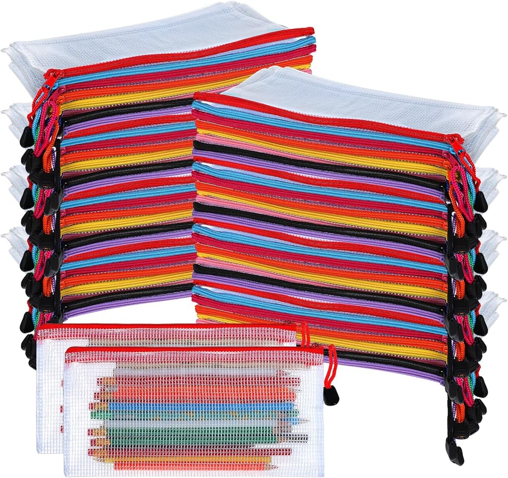 Features: Organize your essentials with this versatile 100-pack of clear mesh zipper pouches. Each pouch measures 9.5 inches by 4.5 inches, providing ample space for storing pencils, pens, stationery items, cosmetics, or travel toiletries. Notes: Manual measurement, please allow slight errors on size. The color may exist a slight difference due to different screen displays.