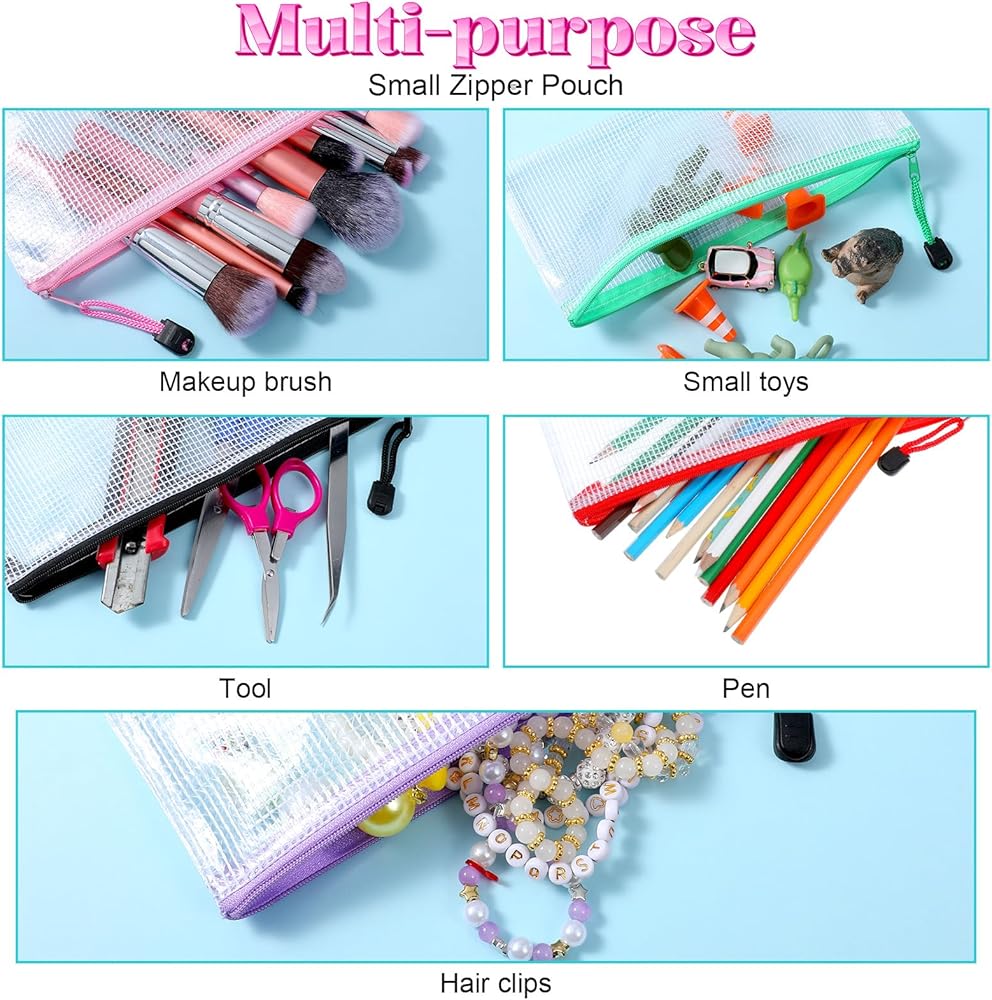 Rich in Quantity and Colors: package contains 100 pieces of mesh zipper pouches in 10 assorted colors, namely black, blue, red, rose red, pink, purple, orange, yellow and green and light blue, 10 pieces per color; Ample quantity and diverse colors can meet your different use demands, and you can also share with your family and friends