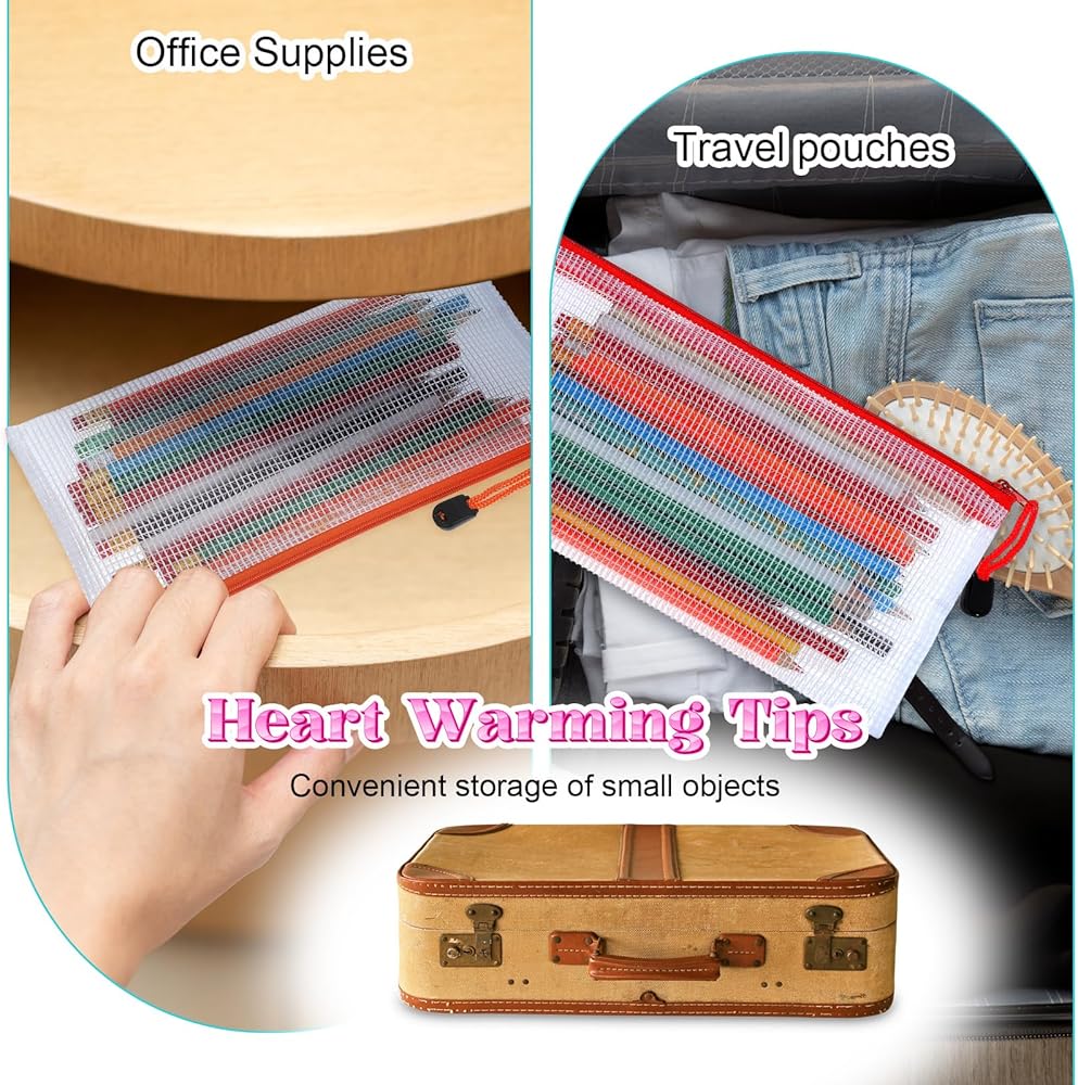 Proper in Dimension: each mesh zipper pouch bulk measures approx. 9.5 x 4.5 inches/ 24 x 11.5 cm, the reasonable size for storing various stationery and other small items such as pencils, cosmetics and bills, which can also be considered as pencil pouch, travel pouch, office and home supplies