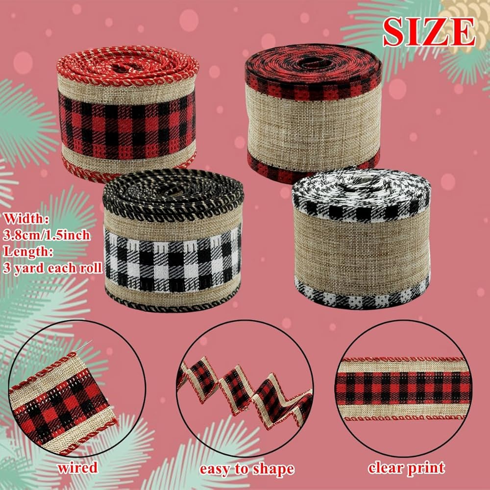 Package Included: You will receive 4 rolls of ribbon, each roll is approx. 3 yard in length, width is 1.5 inch. Enough for your decoration accessories like home decor and gift wrapping.
