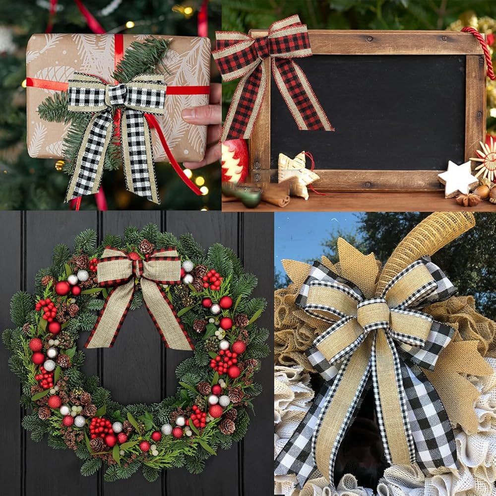 About Material: These ribbons are made of quality burlap, and the edges of the ribbon are wrapped with iron wires, not easy to tear off and fade.
