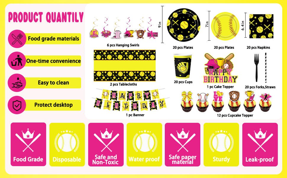 - Theme Design: Features realistic graphics of softballs, bats, and gloves in classic colors for an energetic sports atmosphere