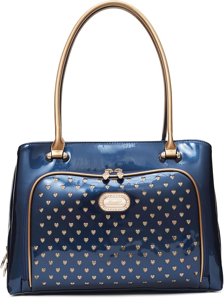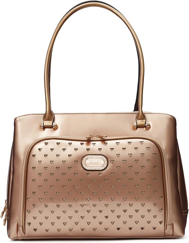 Experience the perfect blend of elegance and functionality with the Brangio Italy Designer Laptop Tote Bag. This chic and versatile bag, is designed for women who appreciate both style and practicality. The luxurious bag features a stunning heart pattern and seamlessly transitions from a stylish handbag to a functional laptop tote, accommodating up to a 15.6" laptop. The bag's spacious interior, with triple middle dividers, 8 card slits, checkbook pockets, and a coin pocket, ensures all your essentials are organized and easily accessible. The magnetic clasp opening offers convenience, while the fully lined logo and cotton interior adds a touch of luxury. The detachable chain-link strap allows the bag to transform into a shoulder bag, making it ideal for any occasion. Crafted with precision and care, the Brangio Italy tote bag showcases premium European quality and timeless elegance. Available in several stunning colors, this bag is a fashion statement and a practical accessory, perfect for any woman on the go.