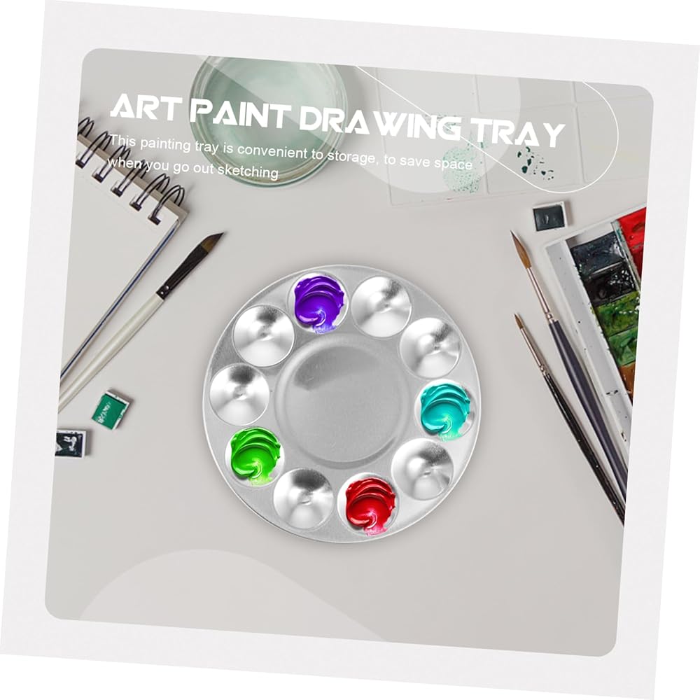 Pigment Plate Great for students, artists, beginners, etc.painting tray It is easy and convenient to use.paint mixing board You can use it with any painting to help your drawing and color mixing.Round Color Mixer Plate This item is an art paint drawing tray, which is made from premium aluminium material, durable and use
