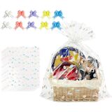 【Professional Presentation Made Simple】: Transform gifts into stunning displays with these clear wrap for gift baskets. Just place your item inside, gather the top, and tie with the included ribbons for an elegant, gift basket wrapping plastic finish that impresses every recipient.