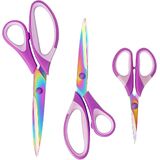 Premium material: The blades of scissors are made of high strength stainless steel, anti-rust and durable for use, with 3x hardness of common stainless steel. Blades with titanium coating: blades with colorful titanium coating are excellent in anti-corrosion performance, quite capable for resisting adhesion like glue and tape, suitable for almost all kinds of tasks. Soft grip handle: soft ergonomic handle made of PP and TPR provides comfortable and good control for your fingers. Wide range of use: easy to cut flimsy cloth, paper, ribbon, and thread, suitable for household, office, and school use. Product packaging includes: 3 pairs of scissors. This scissors set is suitable for versatile use. If you have any questions, please contact us directly.