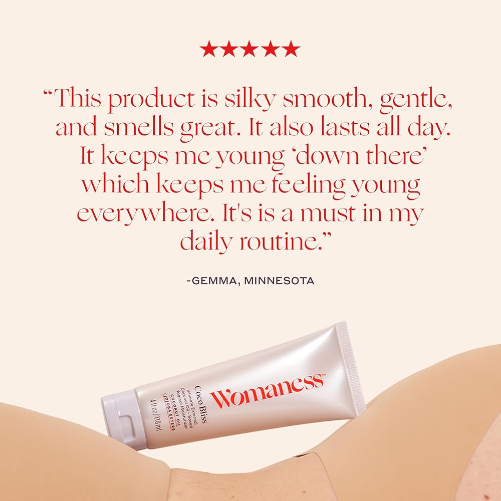 Womaness Coco Bliss Vaginal Moisturizer - Hydrating Coconut Cream for Vaginal Dryness - Non-Sticky Vulva Cream for External Intimate & Body Care - Estrogen & Hormone-Free Formula for Women - 4oz