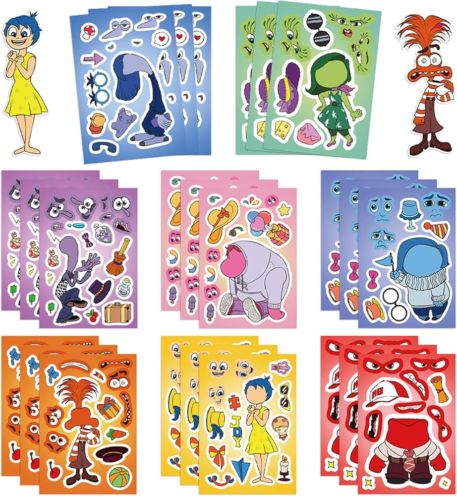 24 Sheets Cute Inside Out Stickers for Teens Make Your Own Cartoon Sticker Make a Face Stickers for Teens, Rewards Movies Themed Art Craft Party Supplies (Inside Out)
