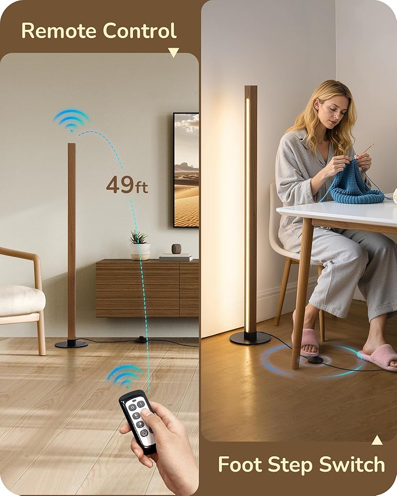 [Remote & Foot Switch] Use the included remote control (up to 49ft range) for convenient access to this led corner lamp, or operate via the foot switch—tap to ON-2700K/4500K/6000K-OFF, or long press for stepless dimming
