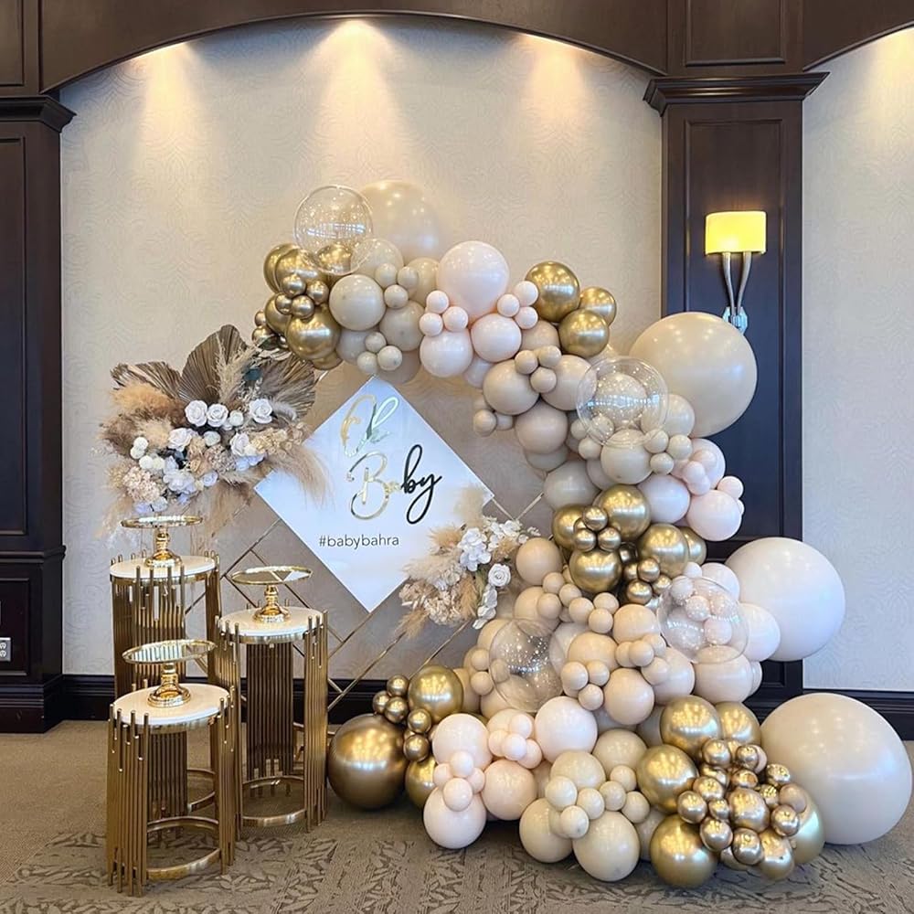 Whether you're hosting a neutral baby shower decorations for boys girls, bridal shower party, wedding decorations, birthday party supplies, bachelorette party decorations, anniversary, engagement, Christmas New Year party decor, these cream white gold latex balloons are a must-have decoration.