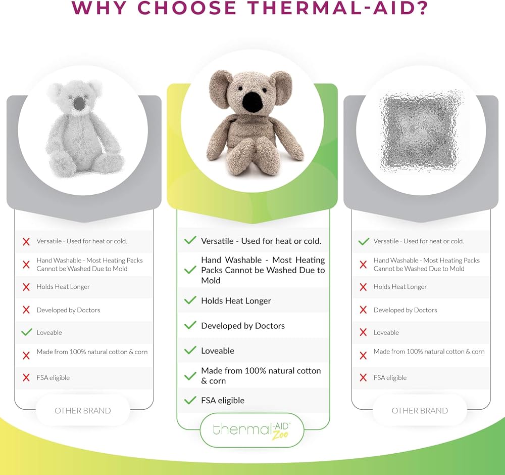 HEAT AND COOL | This koala toy can be kept in the freezer to be used as a cooling towel kids ice pack for boo-boos. Additionally, warm it up to use as a microwavable heating pad.