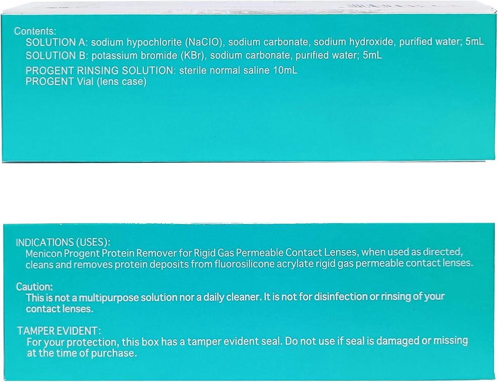 Progent cleans lenses and loosens and removes surface protein deposits after a short soak without manual rubbing. Progent is a highly effective deposit and protein remover and cleaner compatible with all RGP contact lenses. Simply soaking the lenses for 30 minutes will ensure the removal of deposits.