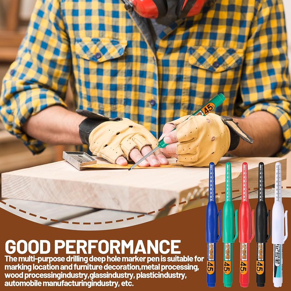 【Ergonomic Design】Designed with user comfort in mind, these construction markers have an ergonomic grip. Wood markers can reduce hand fatigue during long-term use, and deep hole marker enables professionals and DIY enthusiasts to work for long periods of time without discomfort.
