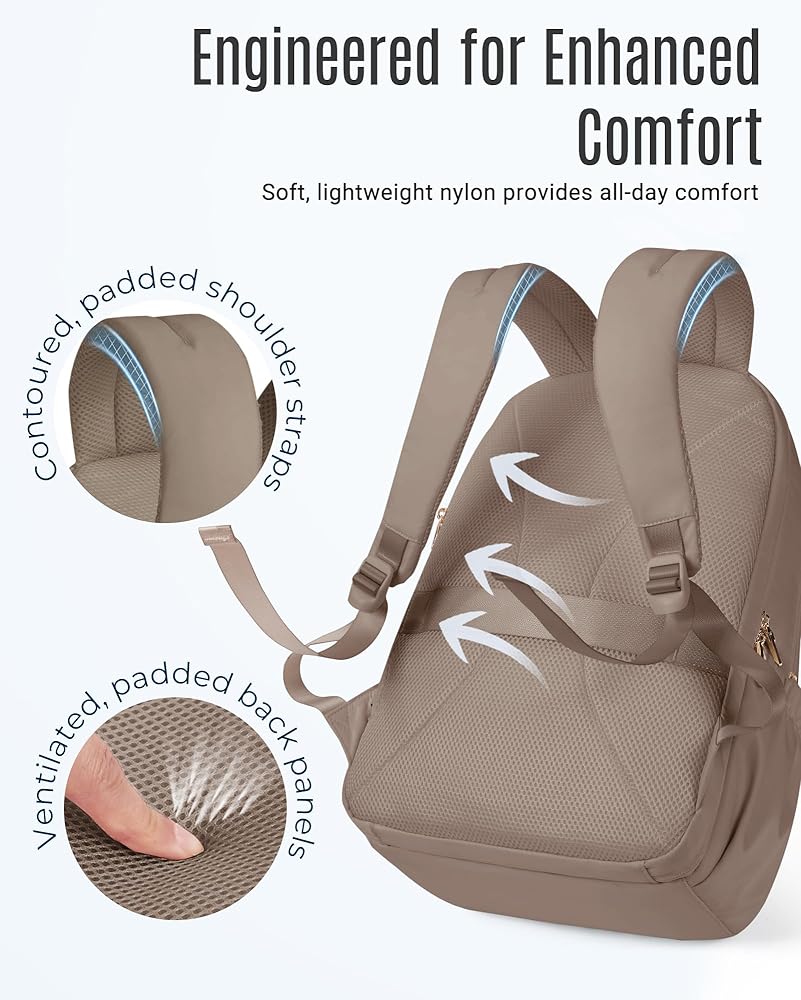 【High-quality and Durable Construction】Crafted from premium nylon fabric with sleek quilting, and sturdy metal zippers, this backpack is both durable and fashionable, all while maintaining a lightweight feel. Measuring 18.7 x 12.7 x 8.5 inches and weighing 1.98 lbs, this travel backpack is flight-approved carry-on baggage, fitting easily under the airplane seat or in the overhead bin