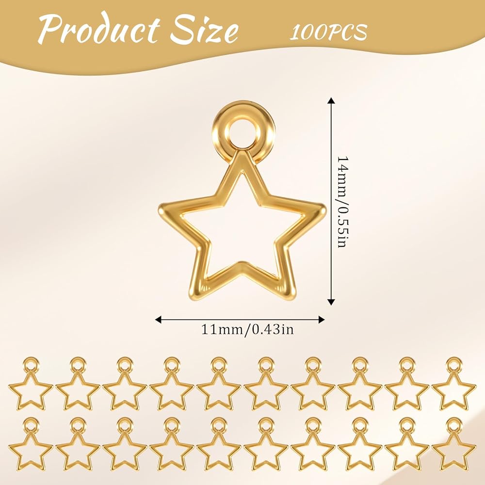 Package Contents: Contains 100 gold star charms, perfect for DIY enthusiasts and creative projects.