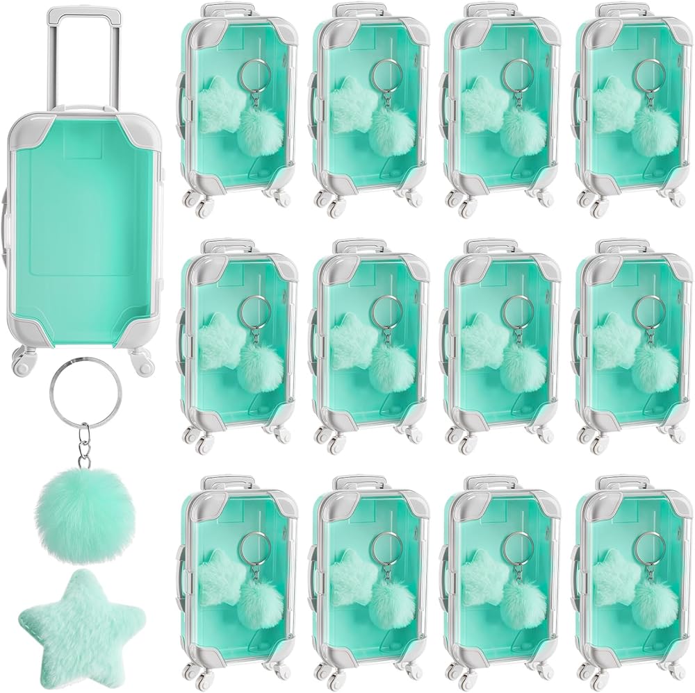 Not just for parties, this mini suitcase party favor box set also makes for a thoughtful gift. Whether for a friend, or coworker, the colorful fur ball keychains and reusable suitcase boxes offer a fun surprise. Use them to create custom gift boxes or decorative storage ideas that are sure to be remembered.