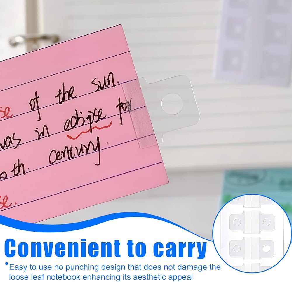Ideal for binders, planners, scrapbooks, retail displays, DIY projects, photo storage, jewelry cards, and lightweight packaging. These tabs also work perfectly as Clear Slot Hole Hang Tags or Clear Adhesive Hanging Tabs in commercial setups.